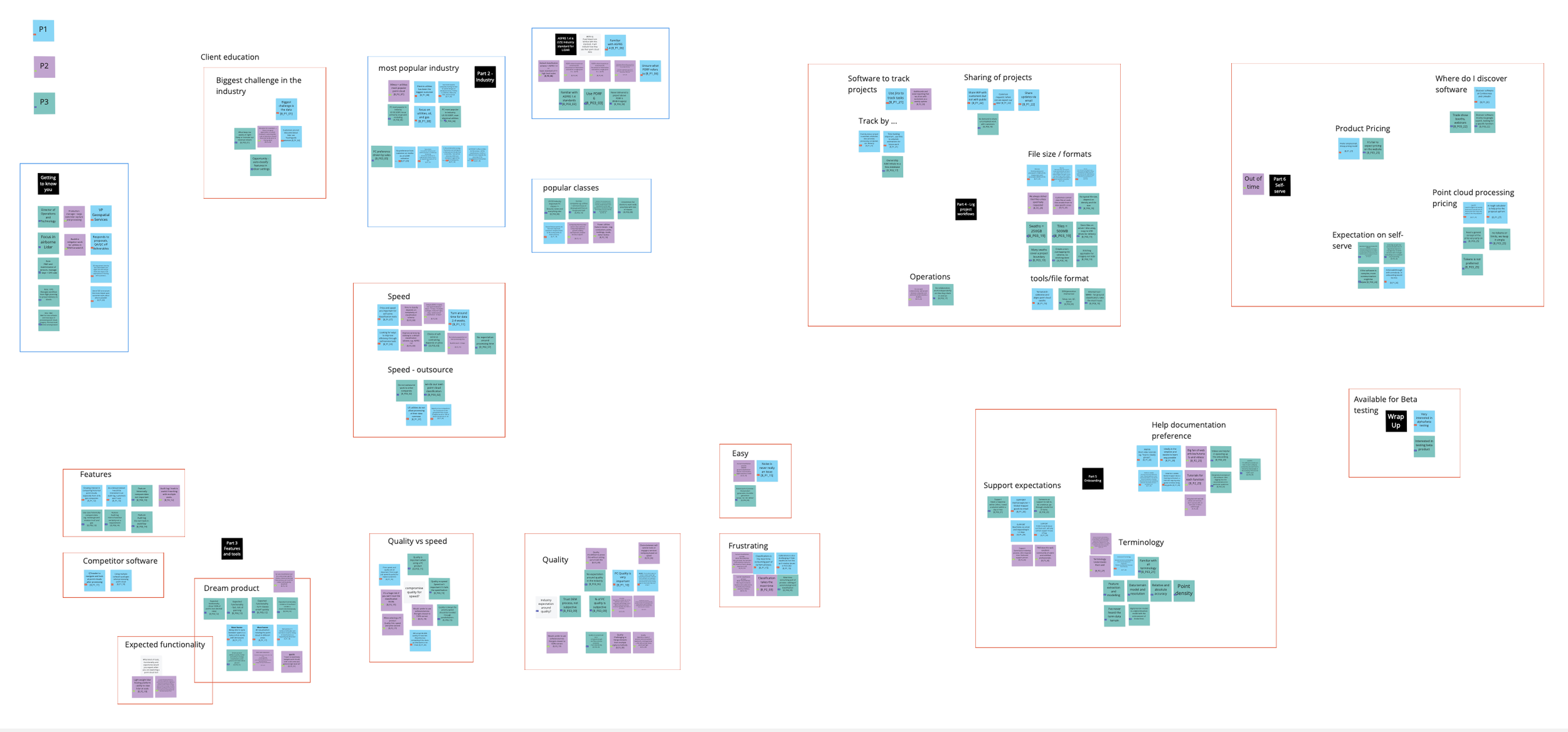 Interviews were recorded via Otter.ai. A summary of each interview was documented in Fibery (similar to Confluence). Miro was used to analyse and synthesis the feedback into themes. From here we deducted actionable insights and presented it to stakeholders.